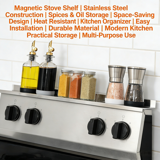 30" Length Stainless Steel Finish Magnetic Shelf for Kitchen Stove - Kitchen Storage Solution with Zero Installation